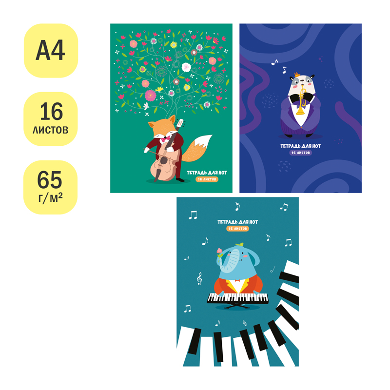 ВНИМАНИЕ: БОЛЬШИНСТВО ЭЛЕМЕНТОВ В НАБОРЕ МОГУТ ИМЕТЬ ОДИНАКОВЫЙ ДИЗАЙН <br/>Тетрадь для нот ArtSpace «Вдохновение» формата А4 (195*270 мм) на скрепке отлично подойдёт для записи нот любимых произведений. Тетрадь имеет вертикальную ориентацию. Внутренний блок состоит из 16 листов офсетной бумаги плотностью 65 г/м2 и 100% белизной. Обложка тетради выполнена из качественного целлюлозного мелованного картона. Стильные и забавные, яркие и сдержанные обложки тетрадей для нот ArtSpace с различными рисунками в музыкальной тематике понравятся и мальчикам, и девочкам.<br/>• Формат: А4 (195*270 мм);<br/>• Кол-во листов: 16;<br/>• Ориентация: вертикальная;<br/>• Крепление: скрепка;<br/>• Материал обложки: мелованный картон