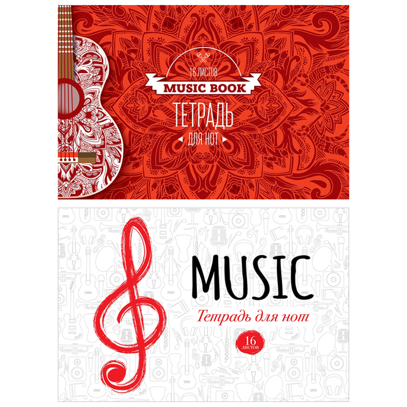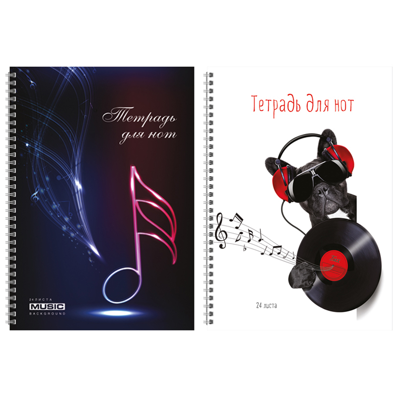 Тетрадь для нот 24л., А4, на скрепке BG "Музыкальные инструменты", выборочный УФ-лак, (вертик.)