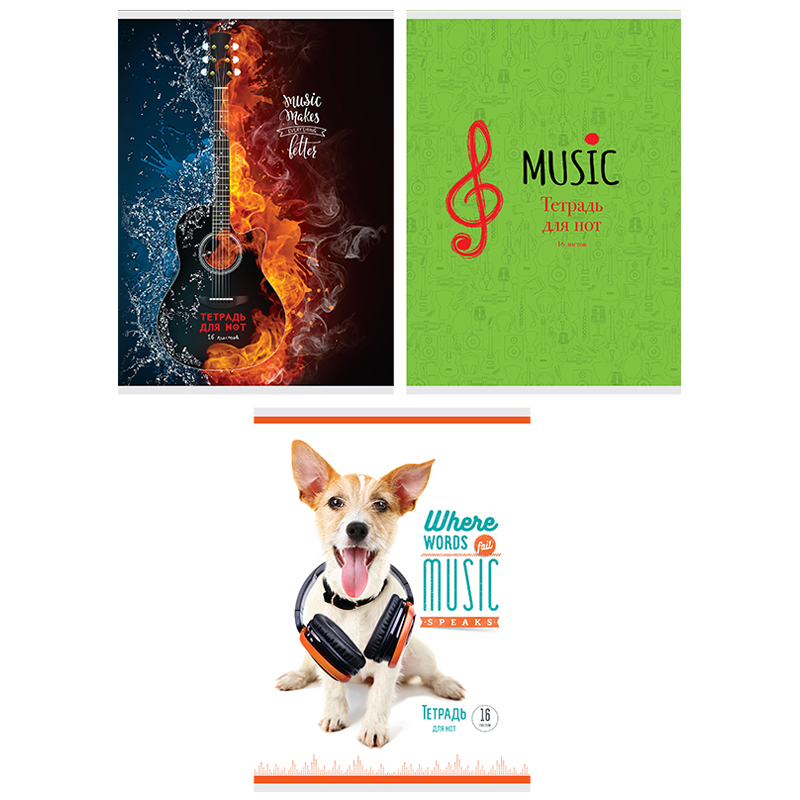 Тетрадь для нот 16л., А4, на скрепке BG "Musical animals", выборочный УФ-лак, (гориз.)