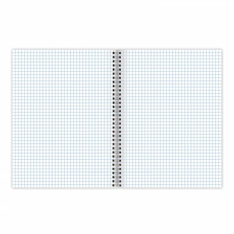 Внутренний блок содержит 80 листов офсетной бумаги плотностью 65 г/м2. Обложка изготовлена из мелованного картона. Линовка - клетка. Металлический гребень надежно скрепляет листы между собой. Белизна - 100%. Формат А4.