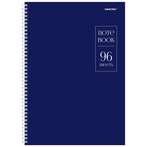 Тетрадь А4, 96 л., ОФИСМАГ скоба, клетка, обложка картон, СИНЯЯ, 405637