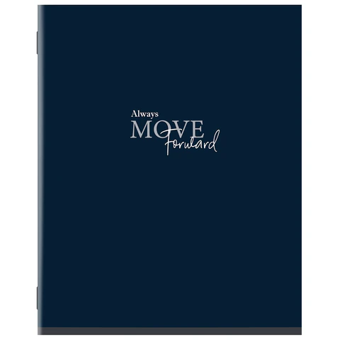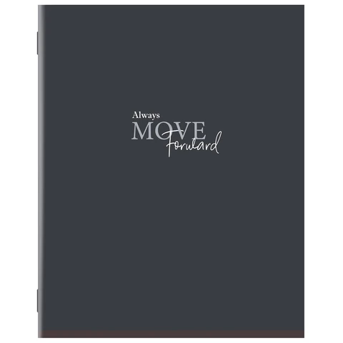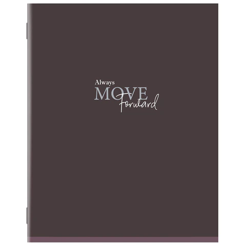 Внутренний блок содержит 96 листов типографской бумаги плотностью 60 г/м2 с серым оттенком. Однотонная обложка выполнена из картона 190 г/м2. Линовка – клетка с полями. Скрепка надежно скрепляет листы между собой. Белизна – 65%. Формат А5.