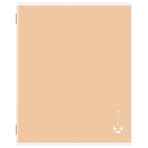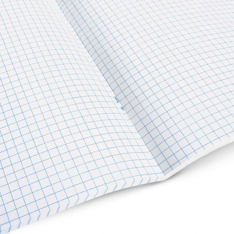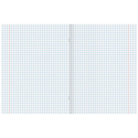 Внутренний блок содержит 96 листов типографской бумаги плотностью 60 г/м2 с серым оттенком. Однотонная обложка выполнена из картона 190 г/м2. Линовка – клетка с полями. Скрепка надежно скрепляет листы между собой. Белизна – 65%. Формат А5.
