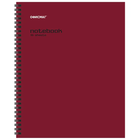 Тетрадь А5, 96 л., ОФИСМАГ, гребень, клетка, обложка картон, БОРДОВАЯ, 405638