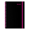 Тетрадь обложка пластик, А5 80л. спираль пластик, резинка, клетка, BRAUBERG, черный/розовый, 405384