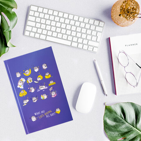 Блокнот МАЛЫЙ ФОРМАТ (110х147 мм), А6, 80 л., твёрдый, клетка, BRAUBERG KIDS, "Котики", 114443