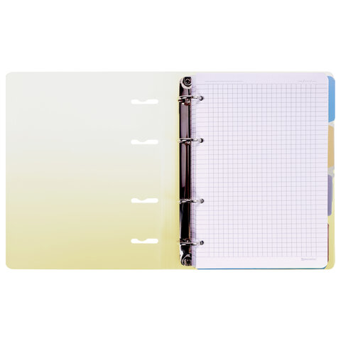 Тетрадь на кольцах с пластиковой градиентной обложкой станет незаменимым помощником в учебе и работе. Импортный кольцевой механизм позволяет легко сменить внутренний блок.