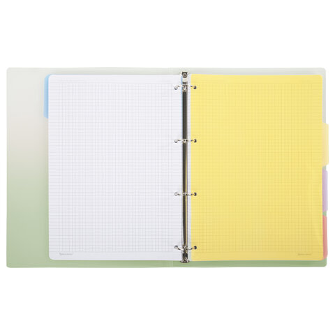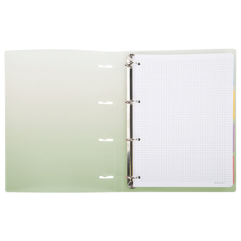 Тетрадь на кольцах с пластиковой градиентной обложкой станет незаменимым помощником в учебе и работе. Импортный кольцевой механизм позволяет легко сменить внутренний блок.