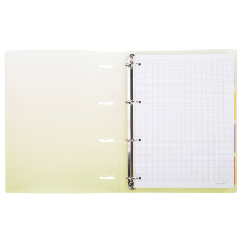Тетрадь на кольцах с пластиковой градиентной обложкой станет незаменимым помощником в учебе и работе. Импортный кольцевой механизм позволяет легко сменить внутренний блок.