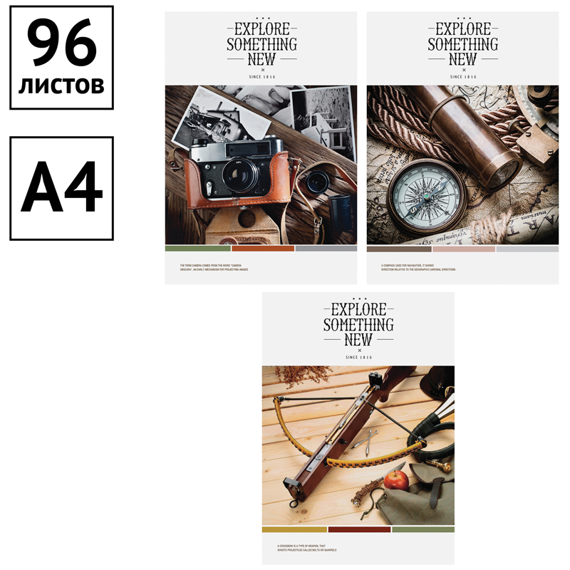 ВНИМАНИЕ: БОЛЬШИНСТВО ЭЛЕМЕНТОВ В НАБОРЕ МОГУТ ИМЕТЬ ОДИНАКОВЫЙ ДИЗАЙН.<br/>Тетрадь ArtSpace «Стиль. Модные артефакты» формата А4 (210*297) на скобе состоит из 96 листов. Внутренний блок - это офсетная бумага плотностью 60-65 г/м², белизна - 100%, линовка – клетка без полей. Обложка тетради изготовлена из импортного целлюлозного мелованного картона. Обложка тетради ArtSpace «Стиль. Модные артефакты» - это фотографии стильных ретро-атрибутов.<br/>• Количество листов: 96;<br/>• Линовка: клетка без полей;<br/>• Формат тетради: А4(210*297);<br/>• Крепление: скрепка;<br/>• Материал обложки: мелованный картон