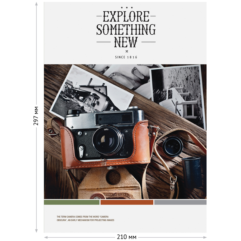 Тетрадь ArtSpace «Стиль. Модные артефакты» формата А4 (210*297) на скобе состоит из 96 листов. Внутренний блок - это офсетная бумага плотностью 60-65 г/м², белизна - 100%, линовка – клетка без полей. Обложка тетради изготовлена из импортного целлюлозного мелованного картона. Обложка тетради ArtSpace «Стиль. Модные артефакты» - это фотографии стильных ретро-атрибутов.