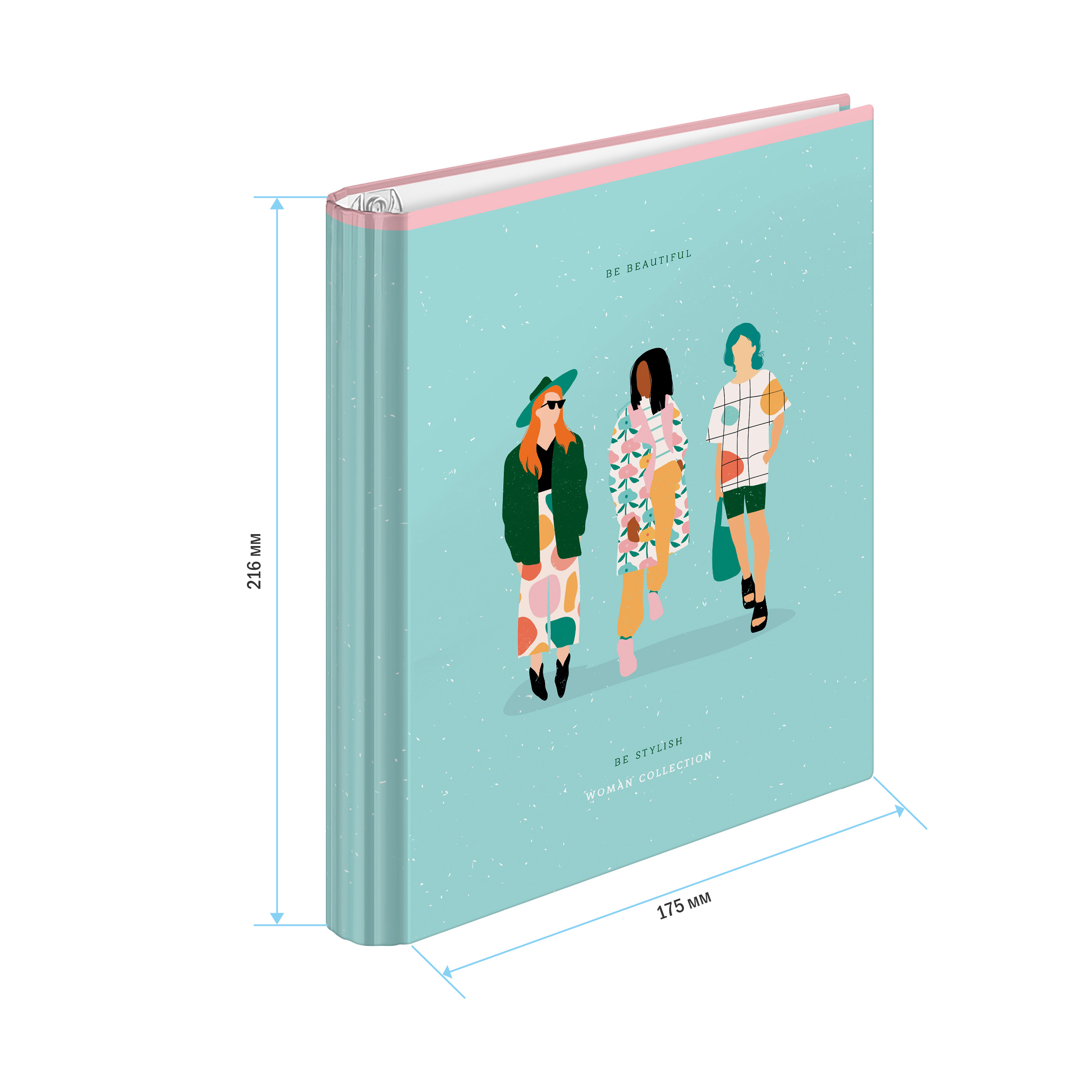 Тетрадь на кольцах ArtSpace серии «Стиль. Be beautiful» формата А5 (216*175 мм) – незаменимый помощник в офисе и учёбе и удобна для большого объёма записей. Внутренний блок – это 120 листов, офсетная бумага плотностью 60-65 г/м², белизна – 100%, линовка – клетка. Тетрадь имеет кольцевой механизм для быстрой смены или добавления листов, состоящий из 4 колец. Обложка изготовлена из твёрдого картона с матовой ламинацией и выборочным УФ-лаком, с скруглённым корешком. Упакована в термоусадочную плёнку.