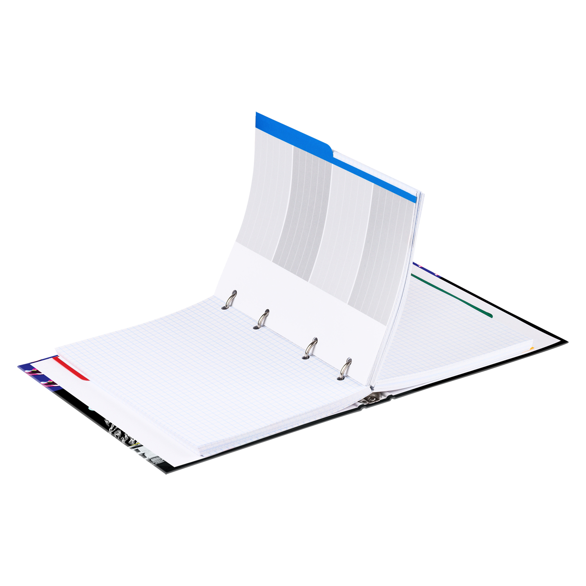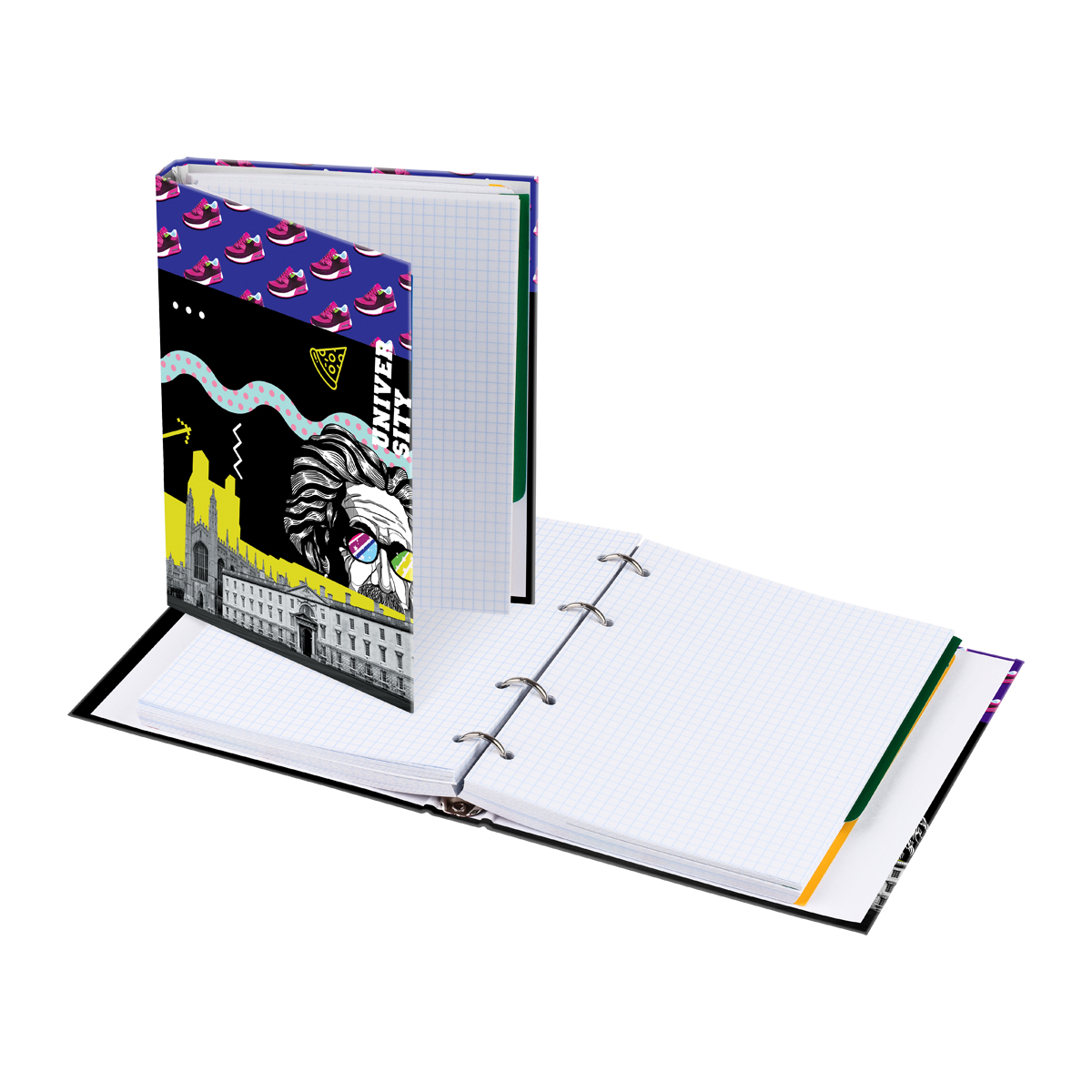 Тетрадь на кольцах BG серии "Универ" формата А5 – незаменимый помощник в работе и учёбе, удобна для большого объёма записей. Внутренний блок – это 240 листов, офсетная бумага плотностью 60-65 г/м², линовка – клетка. Тетрадь имеет кольцевой механизм для быстрой замены или добавления листов, состоящий из 4 колец. Обложка изготовлена из твёрдого картона с глянцевой ламинацией и прямым корешком. Тетрадь выполнена в стильном дизайне с трендовым рисунком и имеет 4 цветных разделителя. Упакована в термоусадочную плёнку.