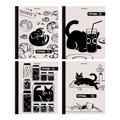 Тетрадь А5 96л. BRAUBERG на сшивке с корешком, клетка, обложка картон, Кот-Непоседа, 405292