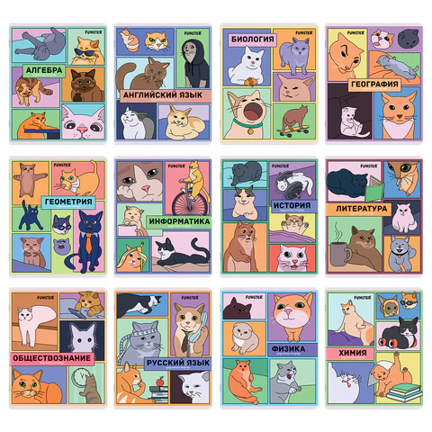 Тетради предметные, КОМПЛЕКТ 12 ПРЕДМЕТОВ, 48л, TWIN лак, FUNSTER, МЕМНЫЕ КОТЫ, 405604