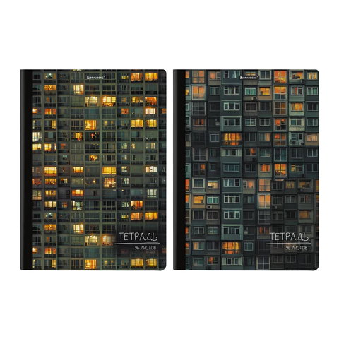 Тетрадь А4 96л. BRAUBERG на сшивке с корешком, клетка, обложка картон, Многоэтажки, 405285