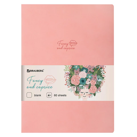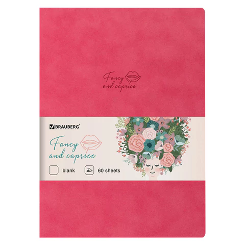 Тетрадь-скетчбук 60 л. обложка кожзам под замшу, сшивка, B5 (179х250мм), 70 г/м2, РОЗОВЫЙ, BRAUBERG CAPRISE, 403863