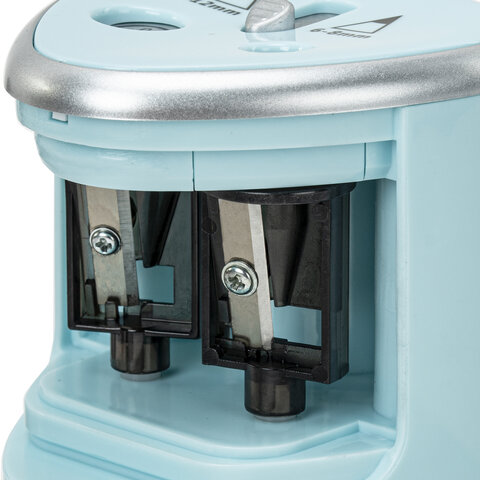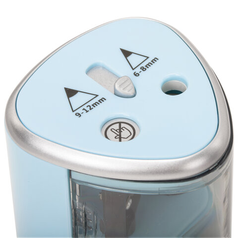 Стильный корпус точилки, выполненный из ударопрочного пластика, позволит ей стать интересной деталью любого интерьера, а прочное прямое лезвие осуществляет острую и быструю заточку любых деревянных и пластиковых карандашей. Подходит как для чернографитных, так и для цветных карандашей. Точилка имеет два отверстия для карандашей диаметром 6-8 мм и 9-12 мм, а также оснащена предохранительным клапаном. Помимо прочего, обладает противоскользящим основанием. Механизм приходит в движение при помощи электричества от 4 батареек АА (в комплект не входят). Затачивание начинается автоматически после помещения карандаша внутрь точилки, и через несколько секунд карандаш идеально заточен и готов к использованию.