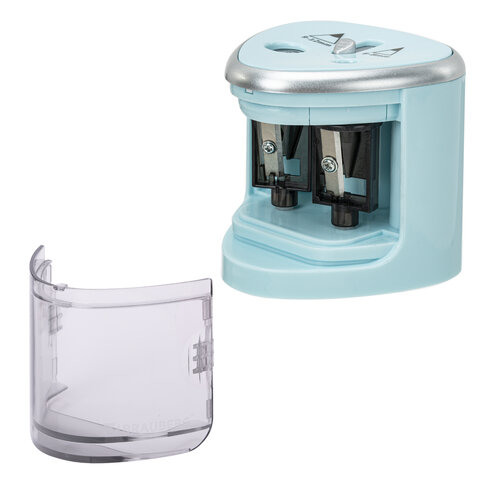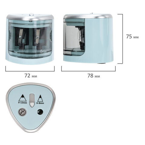 Электрическая точилка BRAUBERG DUAL со съемным контейнером для сбора мусора и прямым лезвием работает от 4 батареек АА (в комплект не входят). Имеет два отверстия для затачивания деревянных и пластиковых карандашей диаметром 6-8 мм и 9-12 мм.