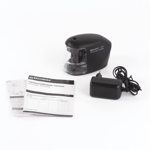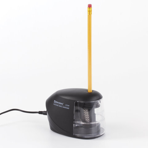 Электрическая точилка BRAUBERG "ORIGINAL" со съемным контейнером для сбора мусора и прямым лезвием, работает от сети. Предназначена для затачивания деревянных и пластиковых карандашей диаметром 6-8 мм.