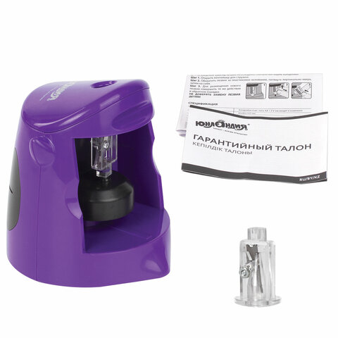Электрическая точилка со съемным контейнером для сбора мусора и прямым лезвием, работает от 4 батареек АА (в комплект не входят). Предназначена для затачивания деревянных и пластиковых карандашей диаметром 6-8 мм.