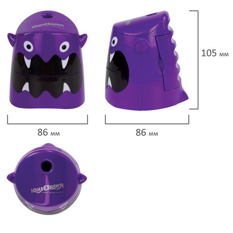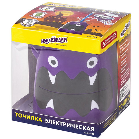 Точилка с ярким корпусом в виде монстрика, выполненным из ударопрочного пластика, и прочным прямым лезвием поможет ребенку быстро и качественно заточить любые деревянные и пластиковые карандаши диаметром 6-8 мм. Подходит как для чернографитных, так и для цветных карандашей. Имеет противоскользящее основание. Механизм приходит в движение при помощи электричества от 4 батареек АА (в комплект не входят) и оснащен предохранительным клапаном и сменным лезвием. Затачивание начинается автоматически после помещения карандаша внутрь точилки. Для правильной заточки необходимо удерживать карандаш от вращения. Уже через несколько секунд он идеально заточен и готов к использованию.