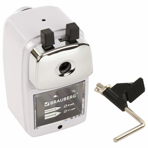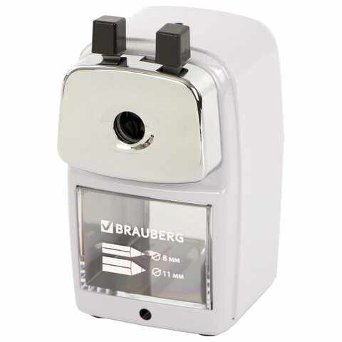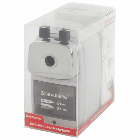 Точилка механическая BRAUBERG CLASSIC, для чернографитных и цветных карандашей, корпус светло-серый, 272002