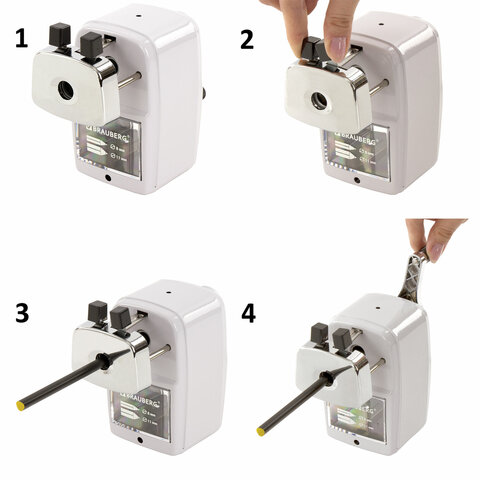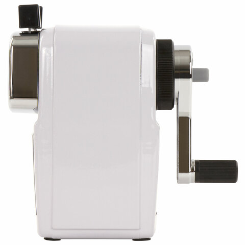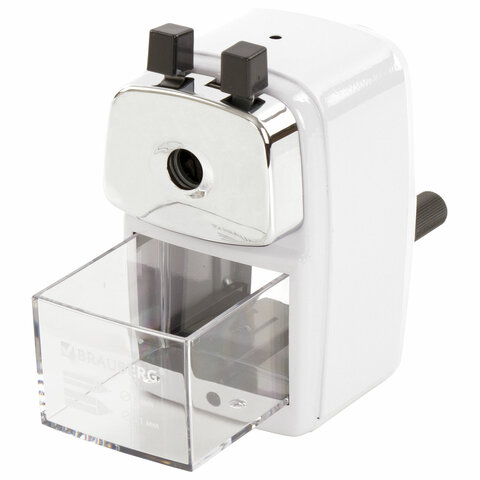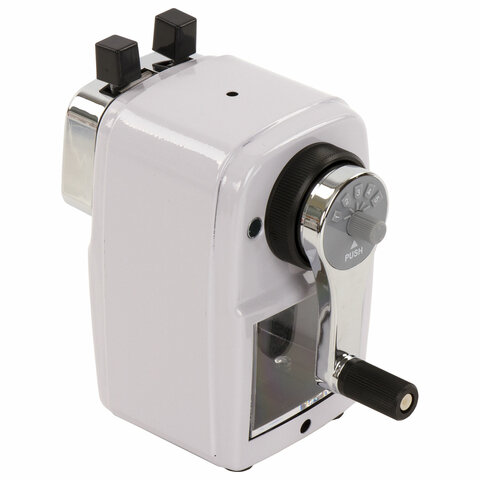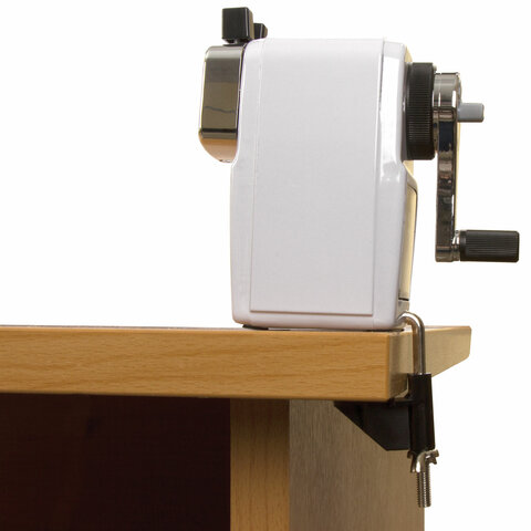 Корпус точилки выполнен из металла. Вращающийся роликовый нож из высококачественной стали обеспечивает быструю и острую заточку. Точилка имеет одно отверстие, которое подходит как для стандартных, так и для утолщенных карандашей. Точилка оснащена переключателем степеней заточки карандаша, что позволяет затачивать как цветные (с более тупым углом заточки), так и чернографитные карандаши. Диаметр затачиваемого карандаша - 8-11 мм. Вместительный контейнер для сбора стружки. Струбцина для крепления к столу. Размер: 125х133х70 мм.