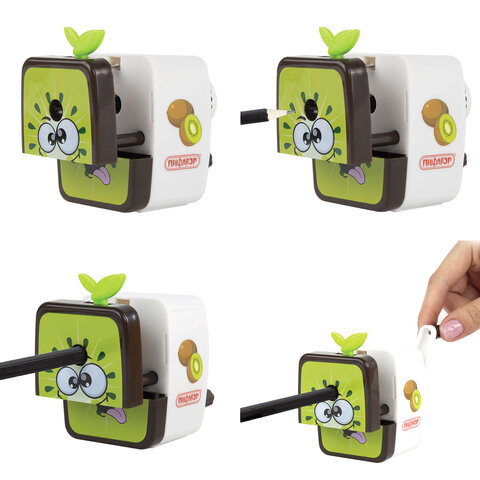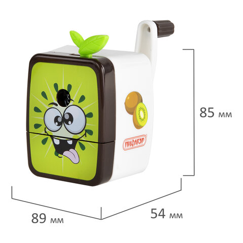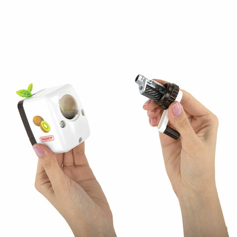 Корпус точилки выполнен из пластика. Вращающийся роликовый нож из высококачественной стали обеспечивает быструю и острую заточку. Точилка имеет одно отверстие и вместительный контейнер для сбора стружки. Диаметр затачиваемого карандаша - 8 мм. Размер: 85х89х54 мм.
