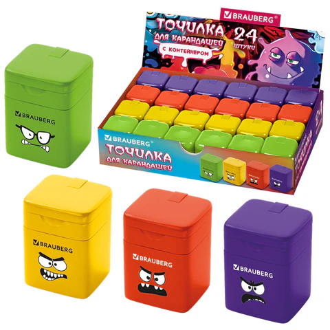 Точилка кросс-серия МОНСТРИКИ, с контейнером, корпус ассорти, BRAUBERG, 273235