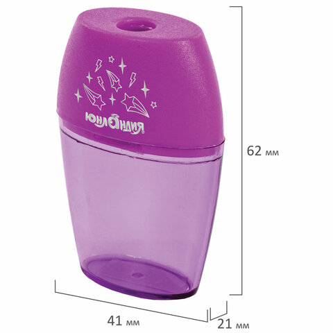 Корпус выполнен из пластика. Острое лезвие обеспечивает высококачественную и точную заточку. Карандаш до 8 мм затачивается легко и аккуратно, а опилки остаются в специальном контейнере. Компактные размеры (62х41х21 мм) позволят поместить точилку в пенал, а благодаря интересному дизайну она не затеряется на парте или столе среди других принадлежностей.