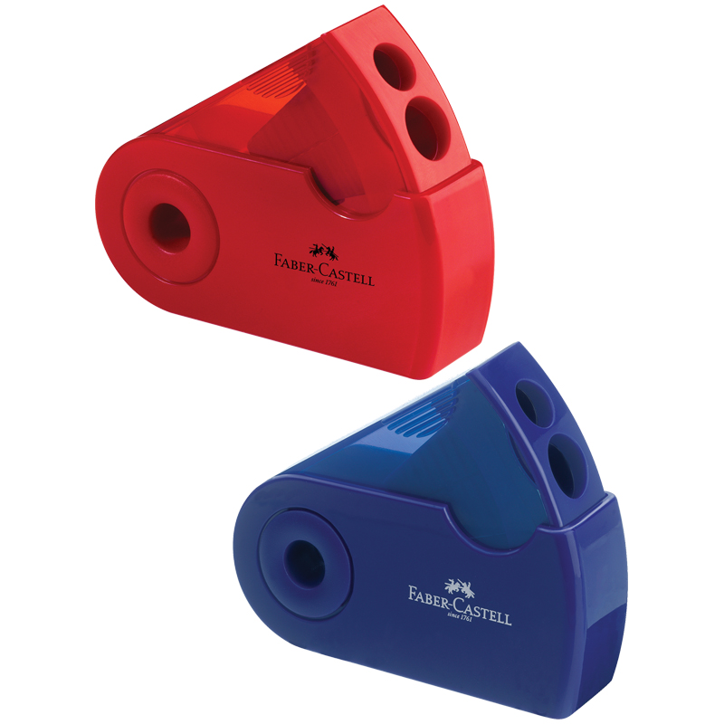 УЦЕНКА - Точилка пластиковая Faber-Castell "Sleeve" 2 отверстия, контейнер, красная/синяя