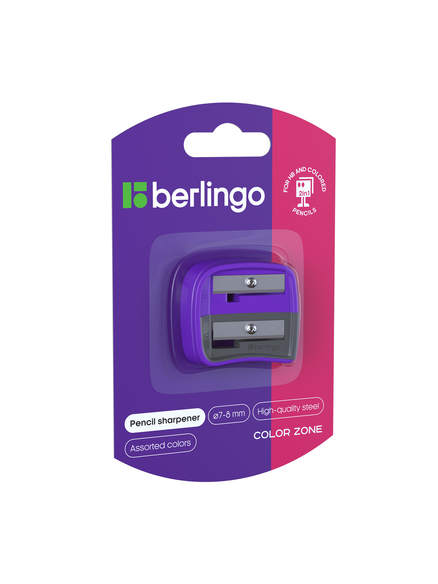 Точилка пластиковая Berlingo "Color Zone Duo", 2 отверстия, для цветных и ч/г карандашей, блистер, фиолетовая