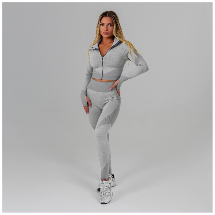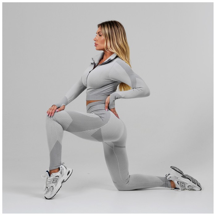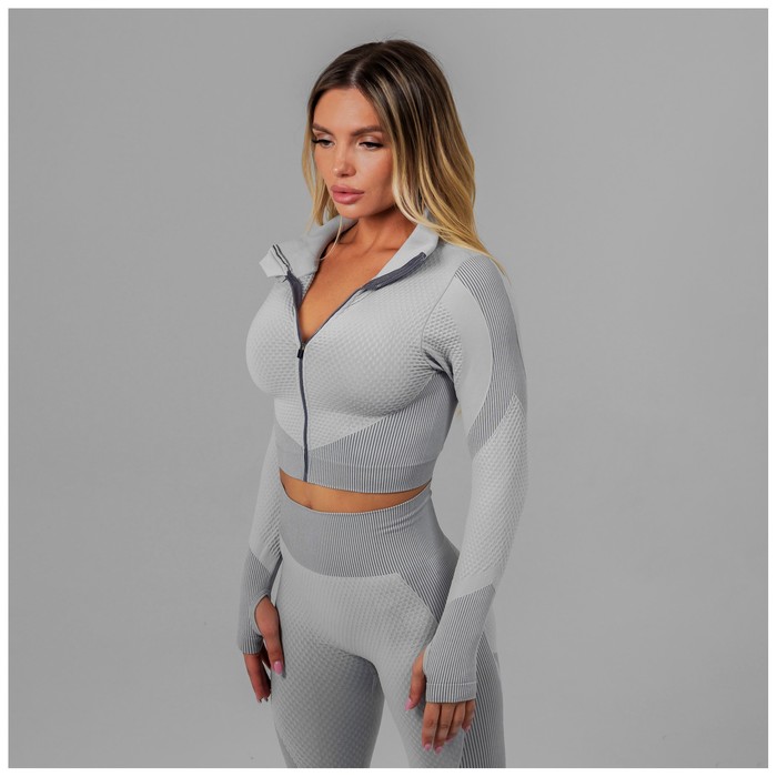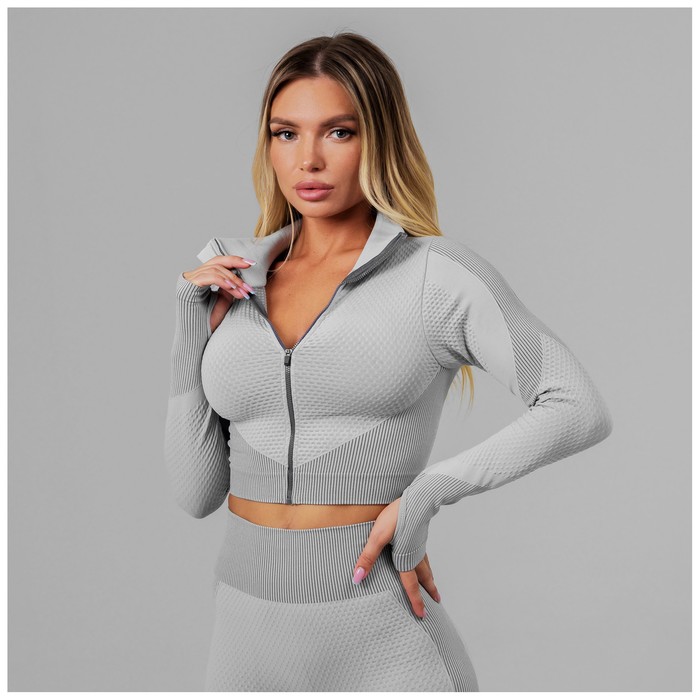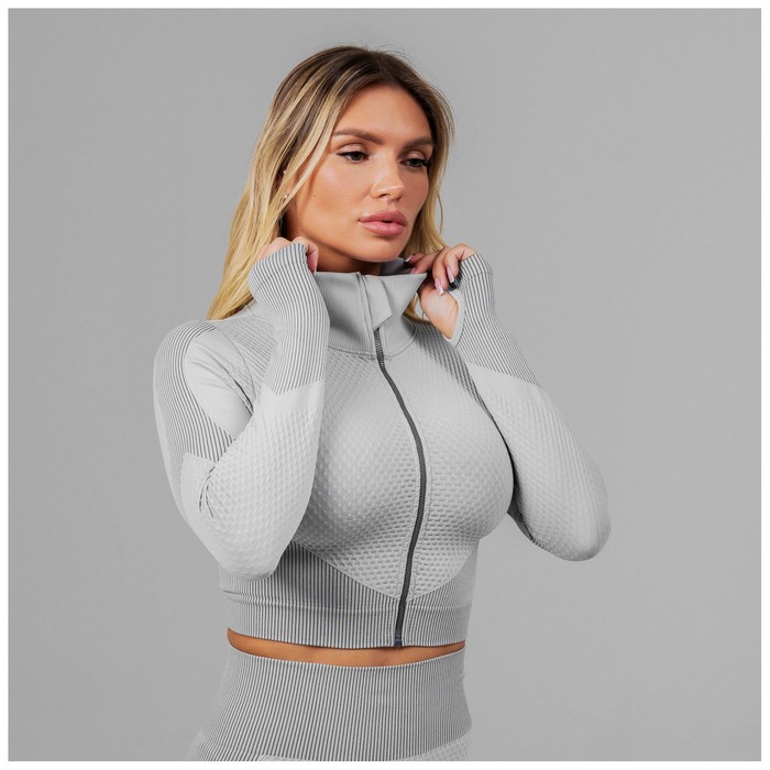 Топ спортивный с длинным рукавом, размер М, цвет серый