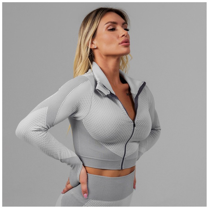 Топ спортивный с длинным рукавом, размер L, цвет серый