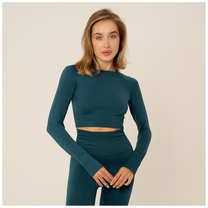 Топ спортивный с длинным рукавом, размер L, цвет бирюзовый