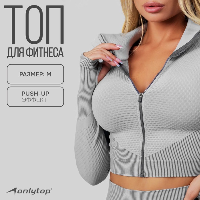 Топ спортивный с длинным рукавом, размер М, цвет серый