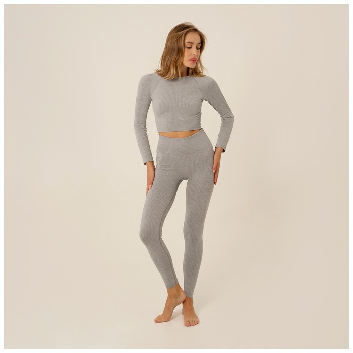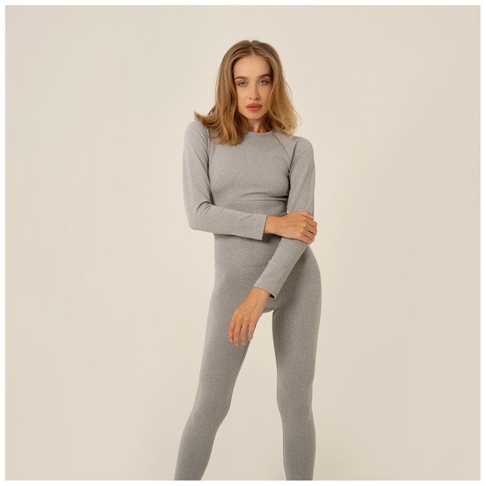 Топ спортивный с длинным рукавом, размер L, цвет серый