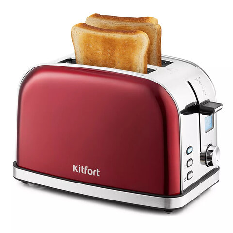 Тостер KITFORT КТ-2036-1, 950 Вт, 2 тоста, 8 режимов, цифровой дисплей, металлический