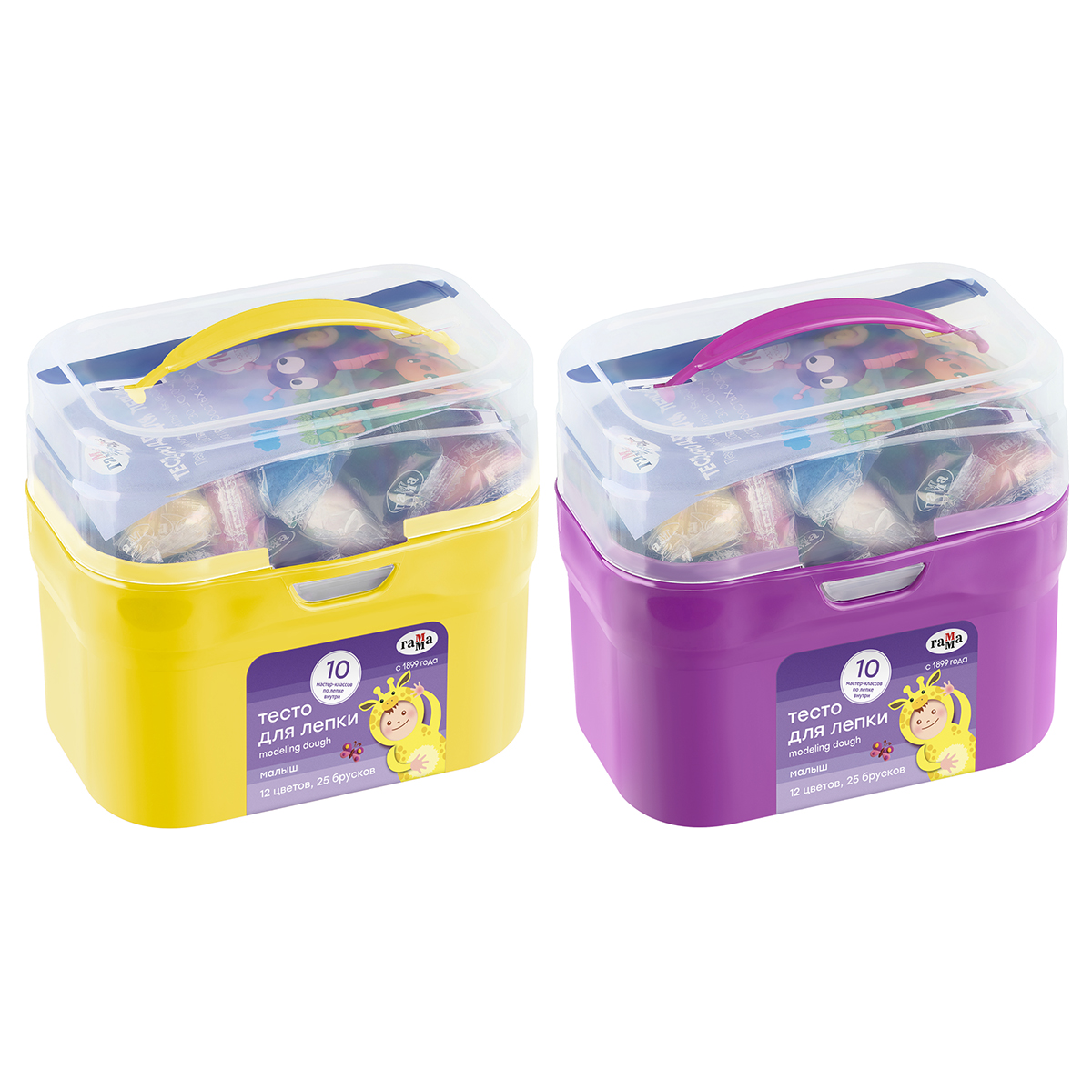Тесто для лепки Гамма "Малыш", 25 брусков, 12 цветов, 625г, стек, пластиковый контейнер, т/у