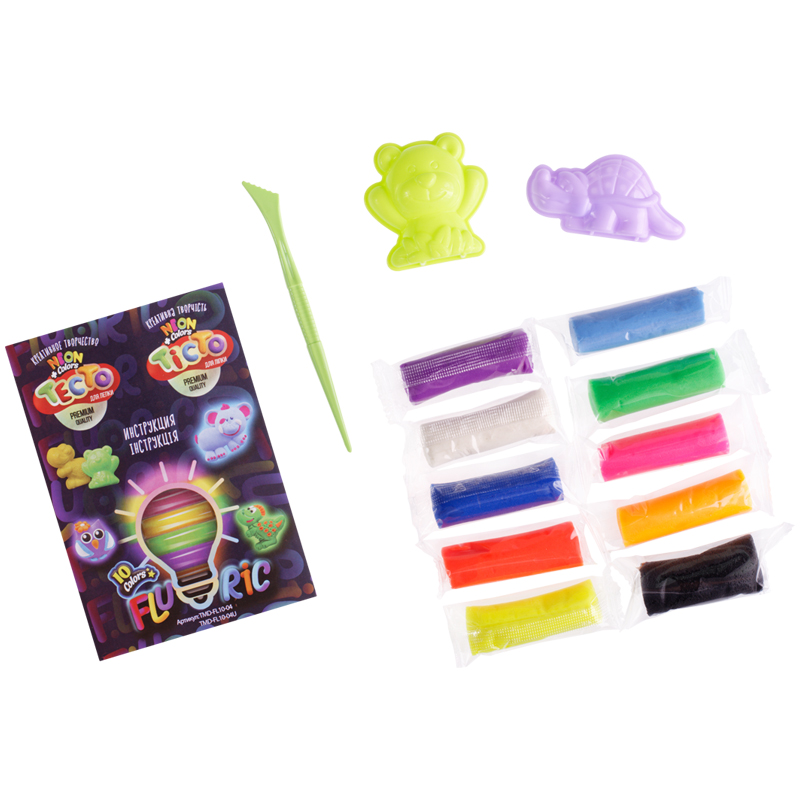 Тесто для лепки «FLUORIC» это креативное творчество, которое светится в темноте. Его уникальность заключается в составе самого материала теста.Тесто для лепки «FLUORIC» — это набор креативного творчества, разработанный для детей и взрослых. Его уникальность заключается в составе самого материала теста и удивительном свойстве светиться в темноте. Оно очень мягкое, но хорошо держит форму, приятное на ощупь, ЯРКОЕ и БЕЗОПАСНОЕ (только не нужно его жевать:))) Разноцветные брусочки флуоресцентного теста и инструкция Мастер-класс помогут создать волшебный мир из самых разнообразных предметов и забавных игрушек, которые ребенок с удовольствием сделает сам. Нежность и пластичность материала способствует развитию тактильных ощущений и мелкой моторики рук у детей, а взрослые с удовольствием помнут его в руках, релаксируя и отвлекаясь от бытовых проблем. Создайте свой яркий фантастический шедевр и поделитесь успехами с близкими!<br/>Сделайте мир светлее!