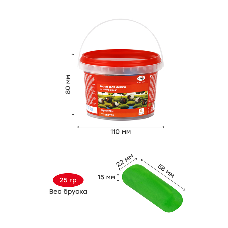 Набор теста для лепки ГАММА серии «Мультики» идеален для детского творчества. Он состоит из 12 брусков, вес каждого – 25 граммов. В наборе 12 основных цветов: жёлтый, зелёный, синий, красный, белый, оранжевый, розовый, чёрный, салатовый, фиолетовый, коричневый, маджента. Тесто на основе натуральных компонентов сертифицировано для детей от 1 года. Идеально подходит для первых творческих работ: развивает мелкую моторику, усидчивость, координацию движений, пространственное и творческое мышление. Масса безопасна и нетоксична, не пачкает руки.<br/>У теста мягкая текстура – оно легко разминается и хорошо держит форму. Цвета можно смешивать между собой, чтобы получить новые оттенки. Тесто застывает за 24–72 часа, а готовой поделкой можно играть. Тесто для лепки безопасно и не токсично. Набор теста упакован в пластиковую банку с ручкой. Каждый брусок в индивидуальной упаковке. <br/>• Количество цветов: 12;<br/>• Вес нетто: 300 граммов.