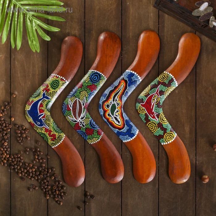 Сувенир "Бумеранг с точечной росписью" цвет натуральный 38х9х1 см, МИКС