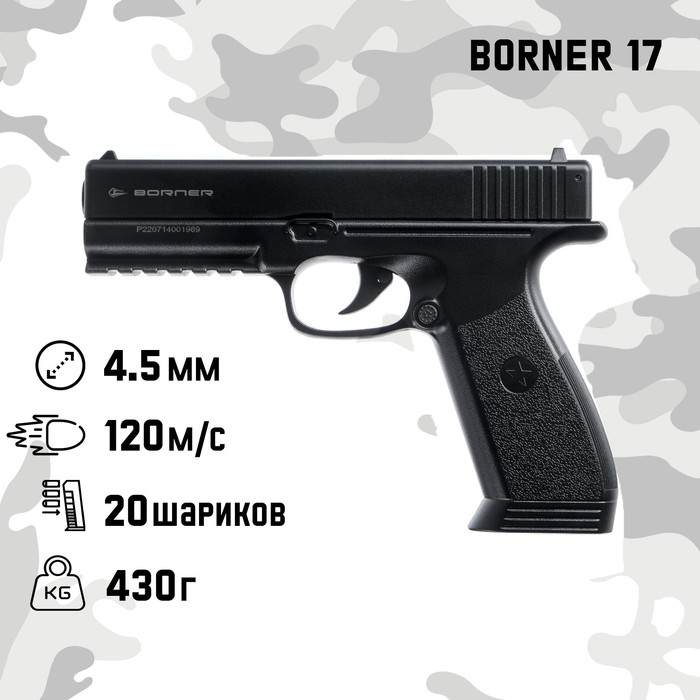 Пистолет пневматический "Borner 17" кал. 4,5 мм, 3 Дж, корп. - пластик, до 120 м/с