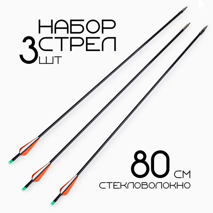 Набор стрел для лука 3 шт, стекловолокно, черная, оперение - оранжевое, 80 см