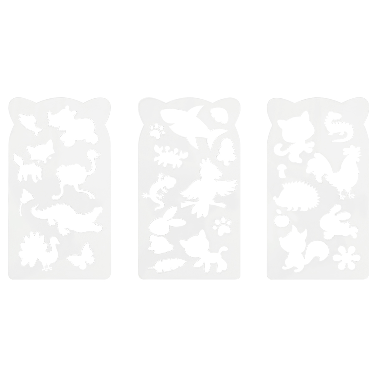 Набор трафаретов состоит из 3 карточек и предназначен для рисования, развития мелкой моторики и фантазии. Детские трафареты для творчества позволят ребенку придумать сюжет своей истории, комбинируя карточки набора. Подходят для использования на любых ровных поверхностях.