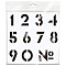 Предназначены для создания надписей информирующего характера.<br/> Подходят для использования на любых ровных поверхностях.<br/> Благодаря химической устойчивости трафарета возможно использование любого типа декоративного структурного материала или краски для нанесения информации.<br/>Высота цифр 40,0 мм.