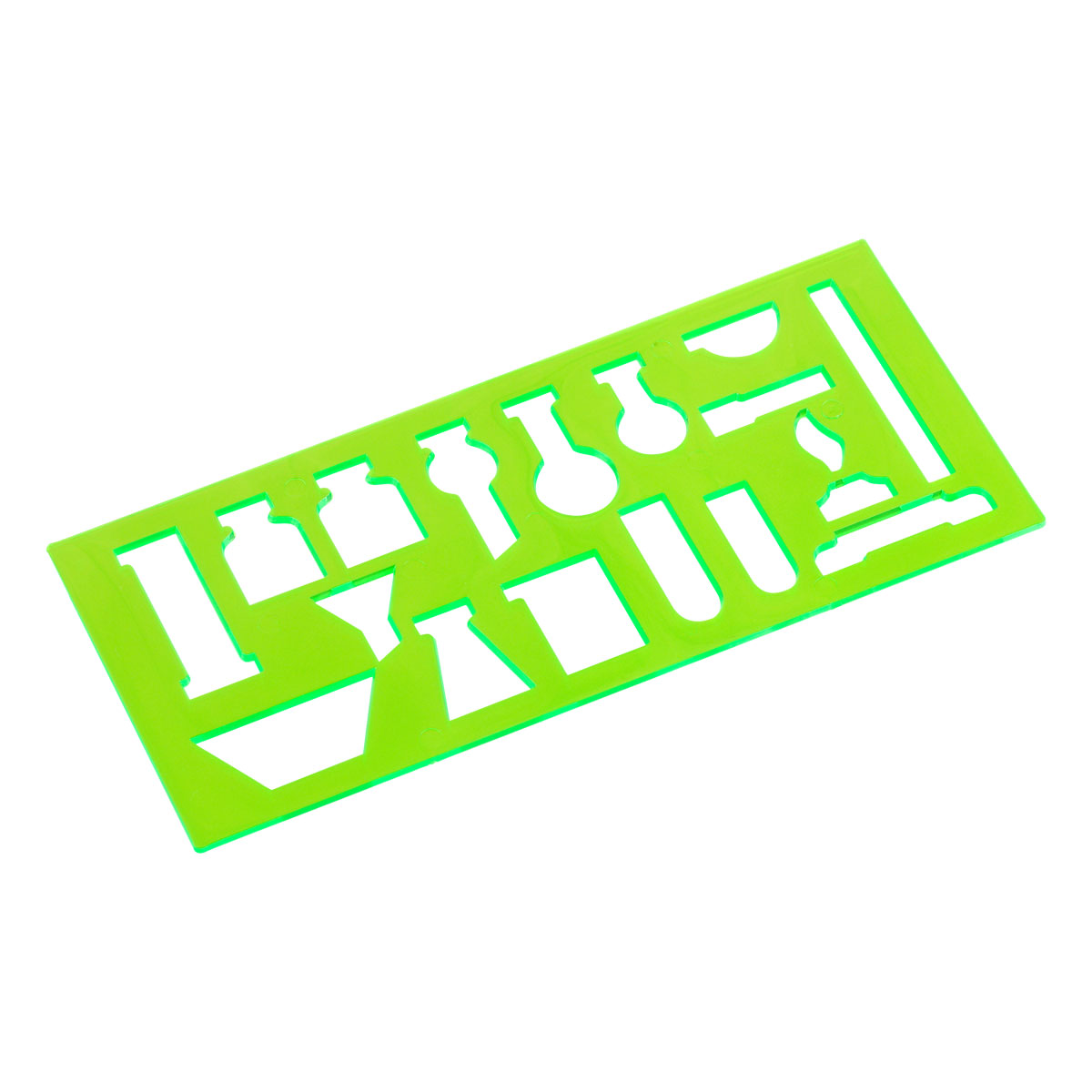 Трафарет химика СТАММ состоит из 18 элементов, предназначенных для оформления практических работ и отчётов по химии. Товар имеет прямоугольную форму и гладкую полированную поверхность. Цвет трафарета – зелёный. <br/>• Материал: полистирол.