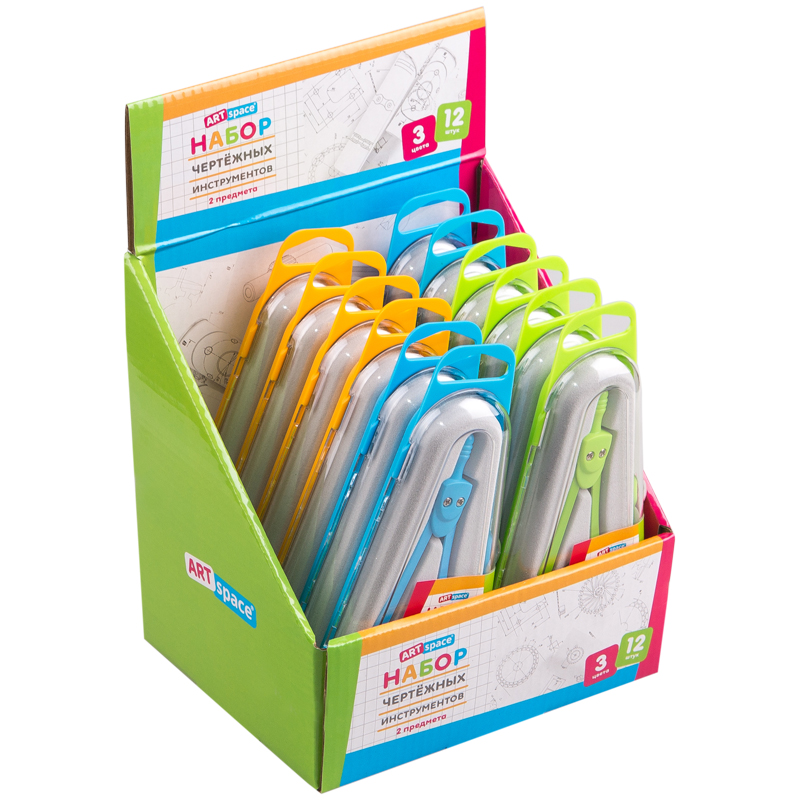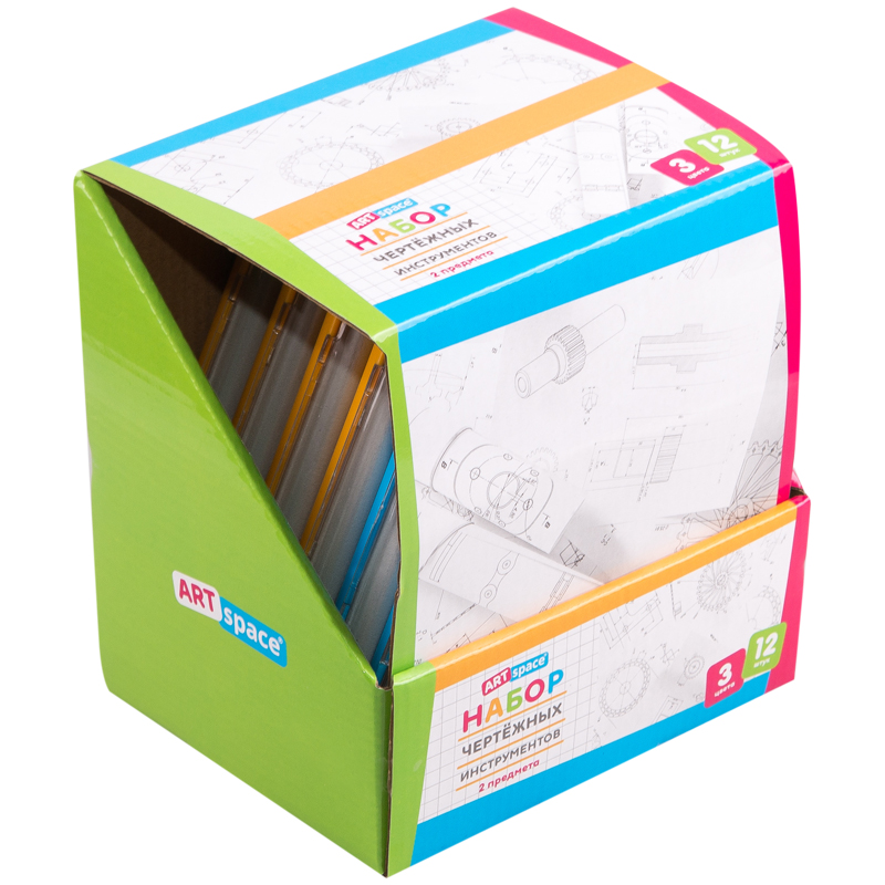 Набор чертежных инструментов ArtSpace, 7 предметов, циркуль 120мм с мех.карандашом, пластиковый пенал, европодвес