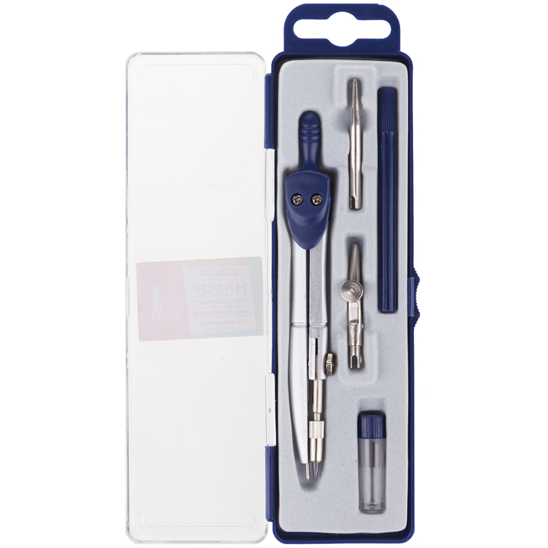 Набор чертежных инструментов ArtSpace, 7 предметов, циркуль 120мм с мех.карандашом, пластиковый пенал, европодвес